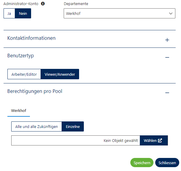 In diesem Bereich können neue Benutzerkonten angelegt und bestehende verwaltet werden. Wählen Sie das entsprechende Symbol, um: