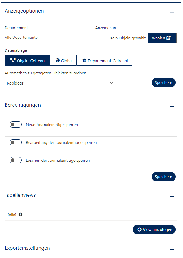 - Hier können Sie bestimmen, wo das Journal angezeigt werden soll.