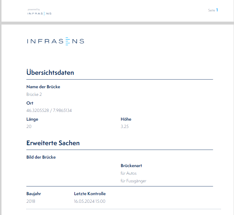 Schliesslich können Sie bestimmen in welchem Format die Daten exportiert werden sollen. GeoJSON ist für Kartenformate und wird nur angezeigt, falls ein Ort bzw. Koordinaten Bestandteil der Daten sind. XLSX und CSV dienen beide für Tabellenprogramme wie Microsoft Excel. Wenn man die Daten in PDF exportiert werden diese in eine vorgefertigte Vorlage abgelegt und veranschaulicht. Falls der Admin keine Vorlage unter "PDF Vorlagen" vorfertigt, wird dafür eine automatische genutzt.