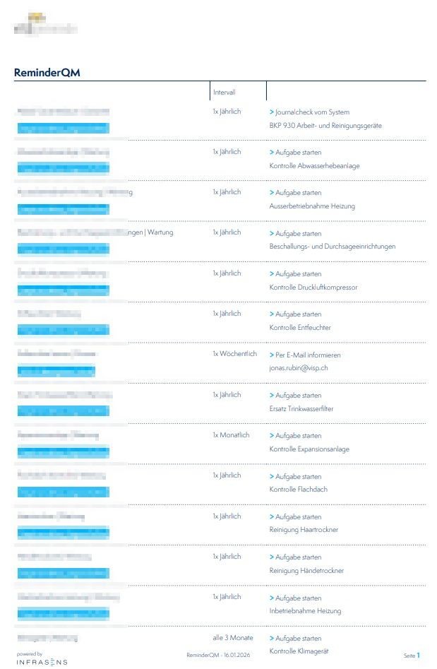 Die Reminder-Funktion bietet zwei übersichtliche Darstellungsformen, um alle hinterlegten Erinnerungen, Wartungen und Kontrollen strukturiert abzurufen. Beide Ansichten unterstützen eine transparente Planung und erleichtern die spätere Auswertung.