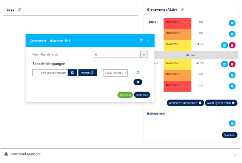 Falls Sie Zugriff auf das Alarmsystem haben, können Sie bestehende Alarmgrenzwerte anzeigen oder allenfalls sogar konfigurieren.