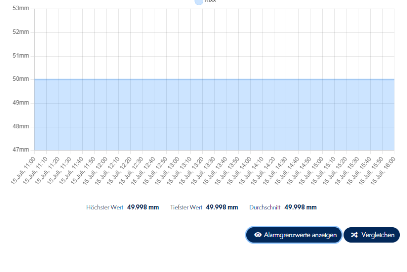 Sie können nach Einrichtung der Alarmgrenzwerte diese auch in der Grafik anzeigen lassen. Unter der Grafik wird "Alarmgrenzwerte anzeigen" als Option verfügbar werden.