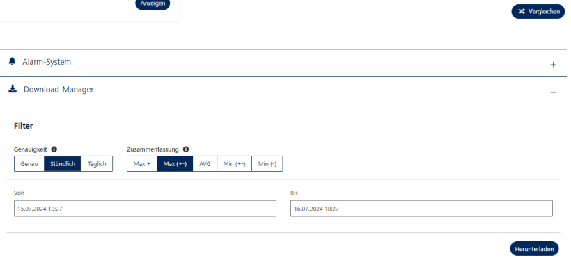 - Öffnen Sie dazu den Download-Manager direkt unter einem Graphen