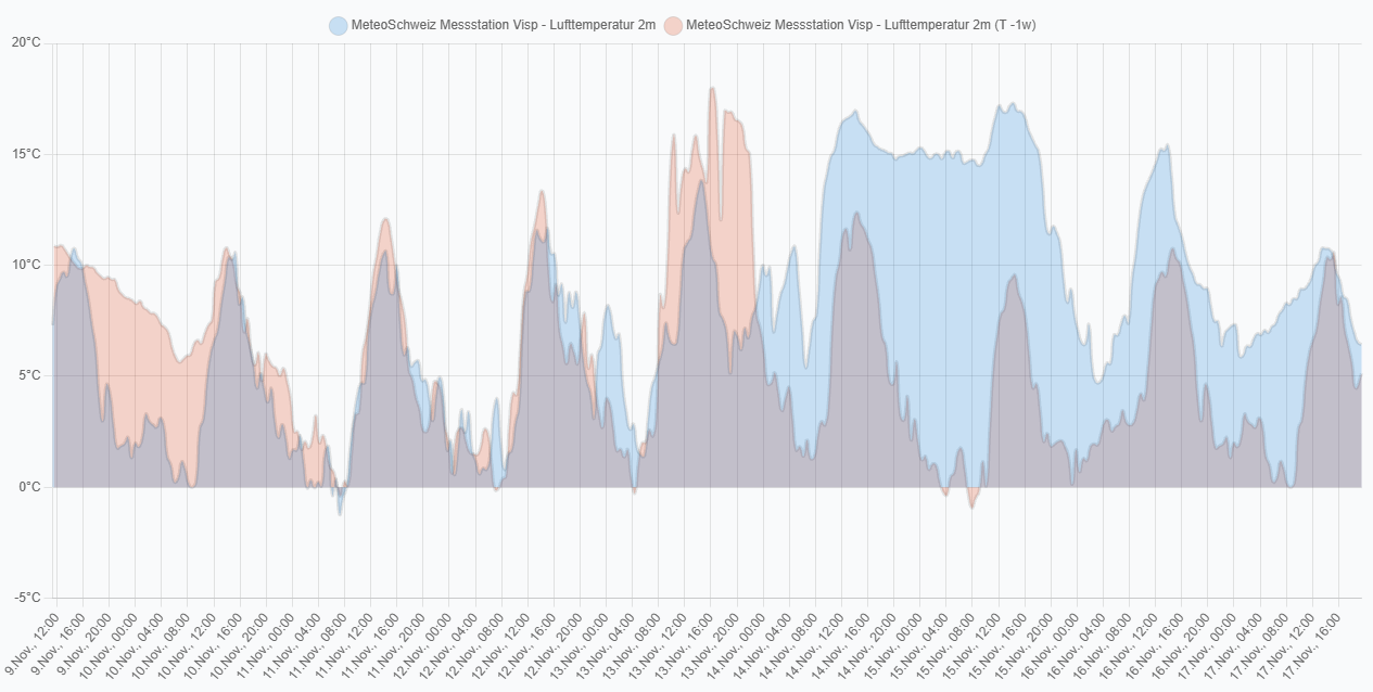 Verschiedene Daten werden nun im gleichen Graphen angezeigt. Wie üblich bei den normalen Graphen stehen alle Funktionen zur Visualisierung bereit, wie z.B das Einzoomen mit der Maus.