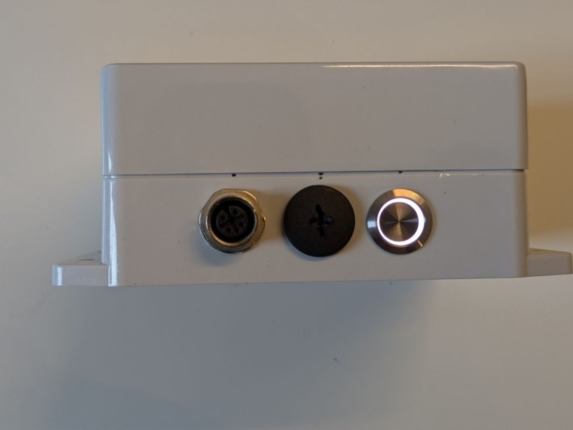 Das InfraLTE Übertragungsgerät ist nun im Betriebsmodus und der Button leuchtet nicht mehr. Lassen Sie den Button in eingedrucktem Zustand. Falls Sie den Button erneut drücken schiebt sich dieser wieder heraus und das Gerät ist ausgeschaltet.