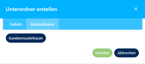 Mittels Spezialkonfiguration können zum Anlegen von immer gleichen Ordner/Ordnerstrukturen sogenannte Musterbäume durch den Superadmin festgelegt werden.